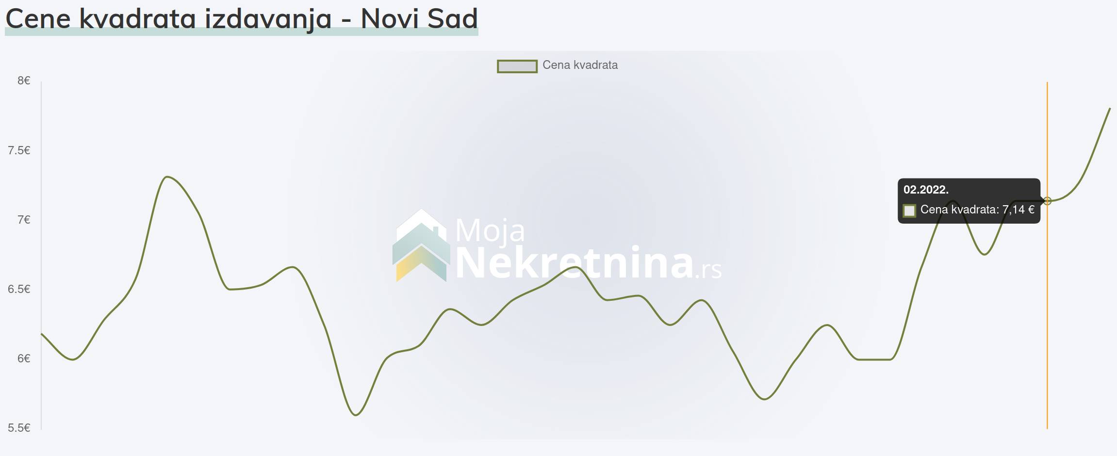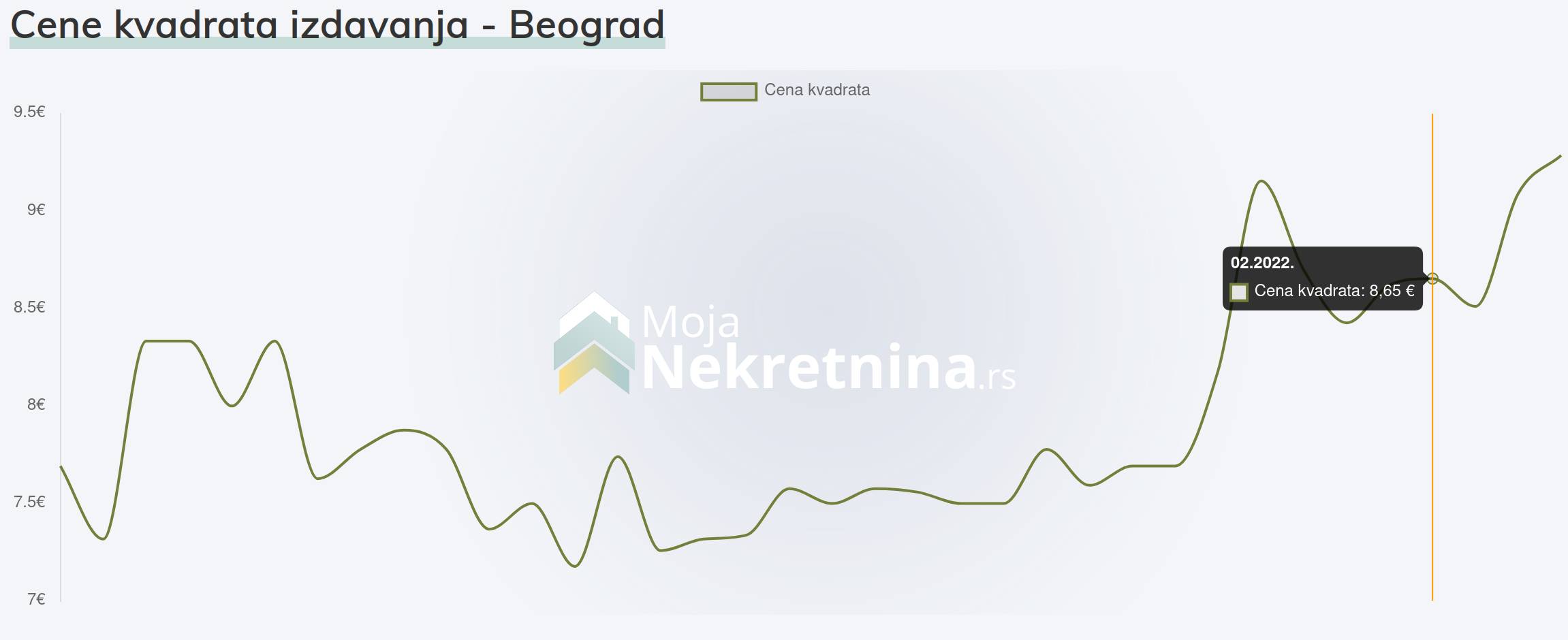 Kada pogledamo cene izdavanja u Beogradu, možemo videti da se samo u aprilu mesecu beleži skok od +6,81% u odnosu na mart mesec a da je sredinom maja već zabeležen skok 2,14%. Kada je u pitanju Novi Sad, skok je nešto veći i iznosi skoro +7,42%. Međutim, cena izdavanja u ova dva grada je već neko vreme u porastu gde se u proteklih godinu dana beleži porast od preko 20%.
